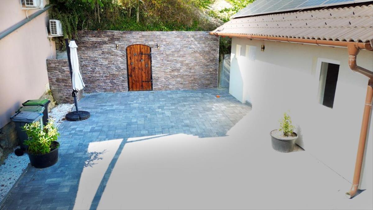 A garázs felhajtója Viacolor térkő lett lerakva, további gépkocsik parkolására van lehetőség.