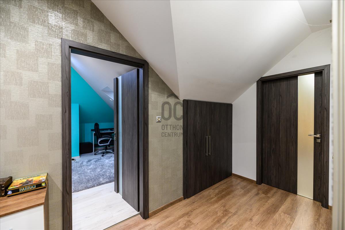 A házban összesen hét szoba található, melyek tágasak és világosak, így mindenki számára biztosítják a megfelelő privát szférát. a három fürdőszoba révén a reggeli rohanás során sem kell aggódnia a sorban állás miatt, míg a garázsban egy autó kényelmesen elfér, valamint 2 fedett és 2 nyitott beálló férőhely biztosítja, hogy akár minden családtag kényelmesen tudjon parkolni.