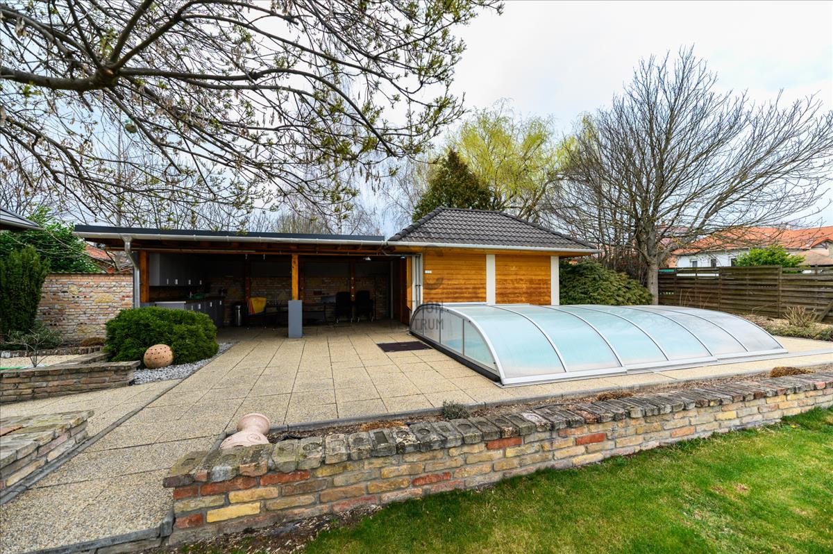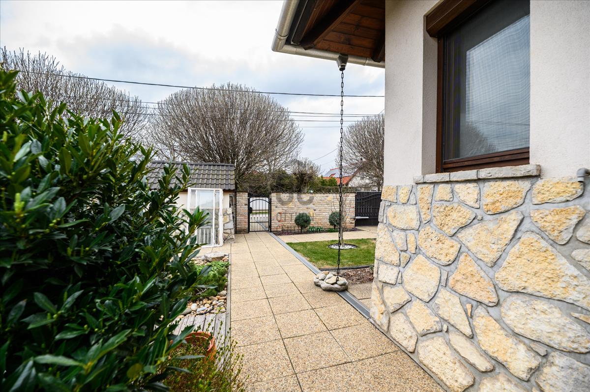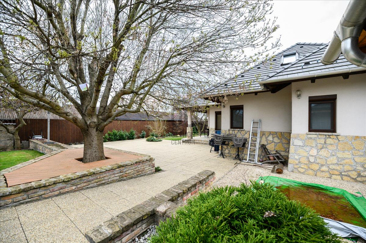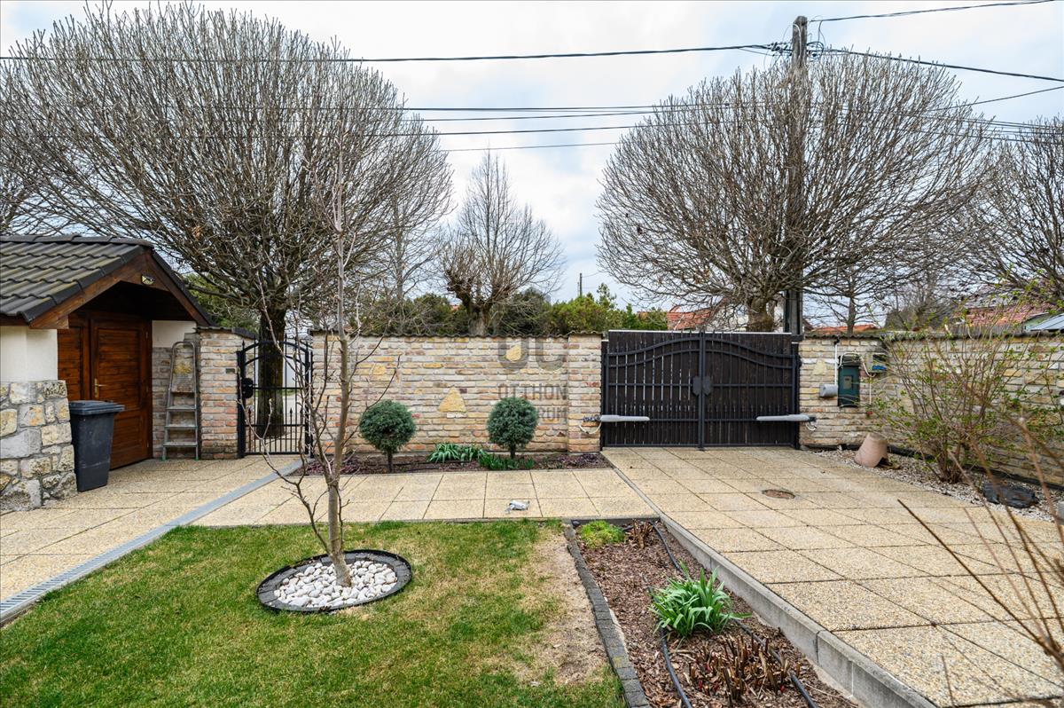 A telek mérete 1100 négyzetméter, a kert rendezett és a medencével felszerelt, amely tökéletes helyszínt biztosít a családi összejövetelekhez és a minőségi kikapcsolódáshoz.