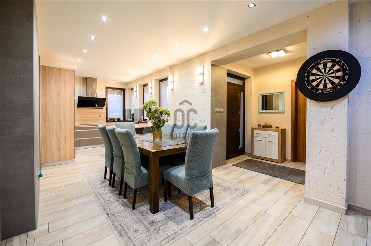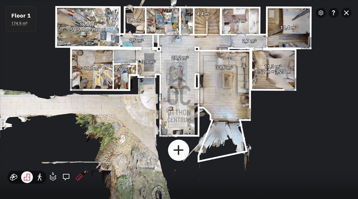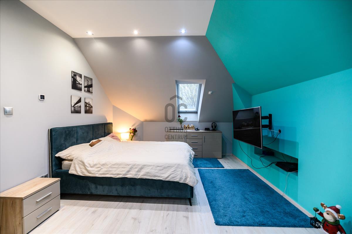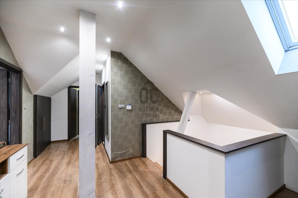 A földszint 158, 5 négyzetméter, ahol található 3 hálószoba, 2 fürdőszoba, hatalmas nappali, konyha-étkező, mosókonyha, kazánház és egy tároló. Az emelet 97 négyzetméter, ahol található 2 hálószoba, 1 fürdőszoba, illetve egy konditerem, amely igény esetén könnyedén átalakítható hálószobává. Az ingatlan napelemmel felszerelt.
