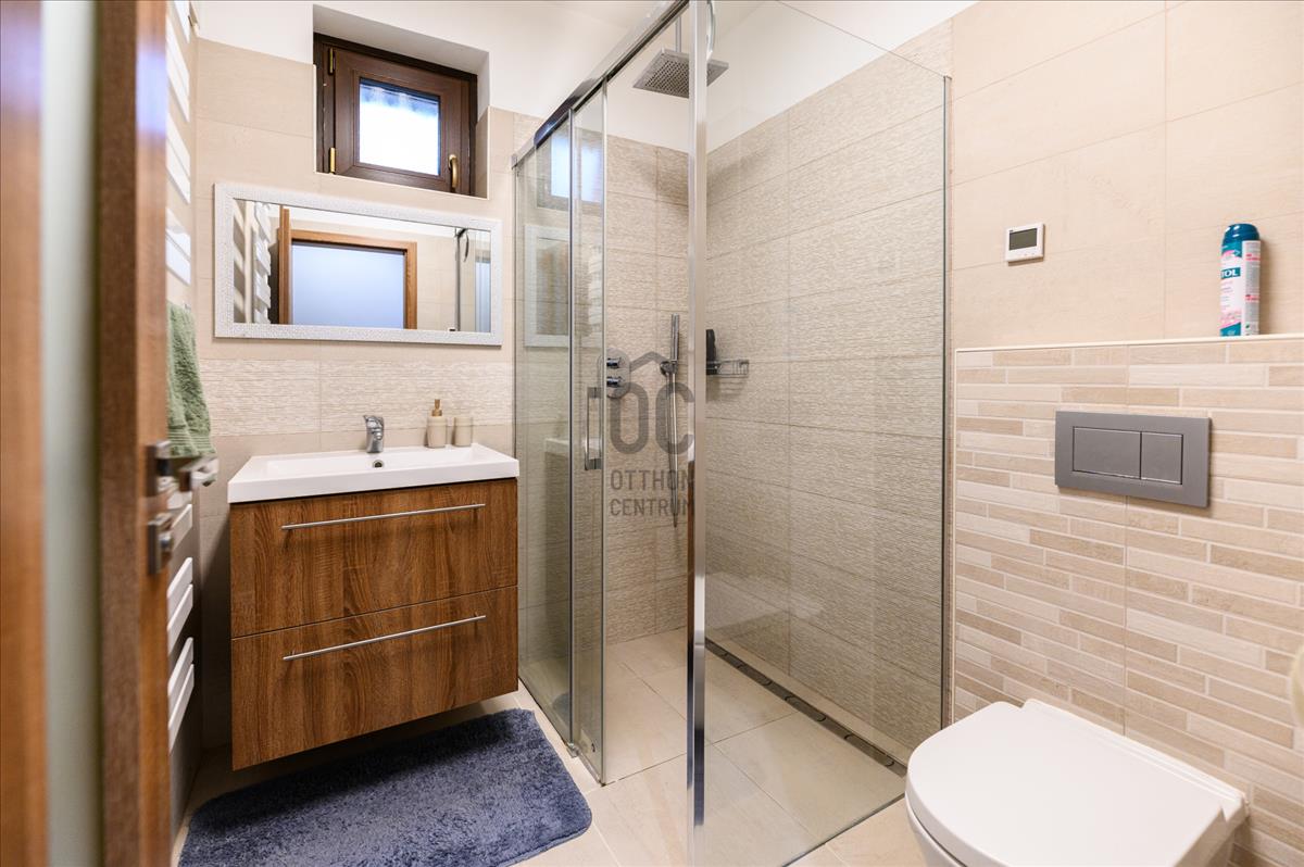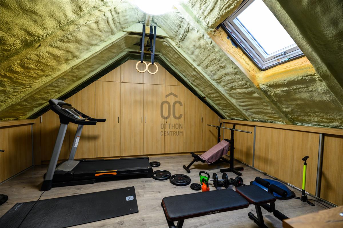 A ház modern hőszivattyús padlófűtésének és mennyezethűtésének, valamint a gázcirkó fűtésnek köszönhetően a hőmérséklet mindig kellemesen szabályozható, így évszaktól függetlenül élvezheti az otthon kényelmét. a kandalló pedig nemcsak a meleget biztosítja, hanem a hangulatos estéket is varázslatosabbá teszi. a beépített bútorok és szekrények, valamint a led hangulatvilágítás emelik a ház komfortját, míg a motoros redőnyök a modern technológia kényelmét biztosítják.