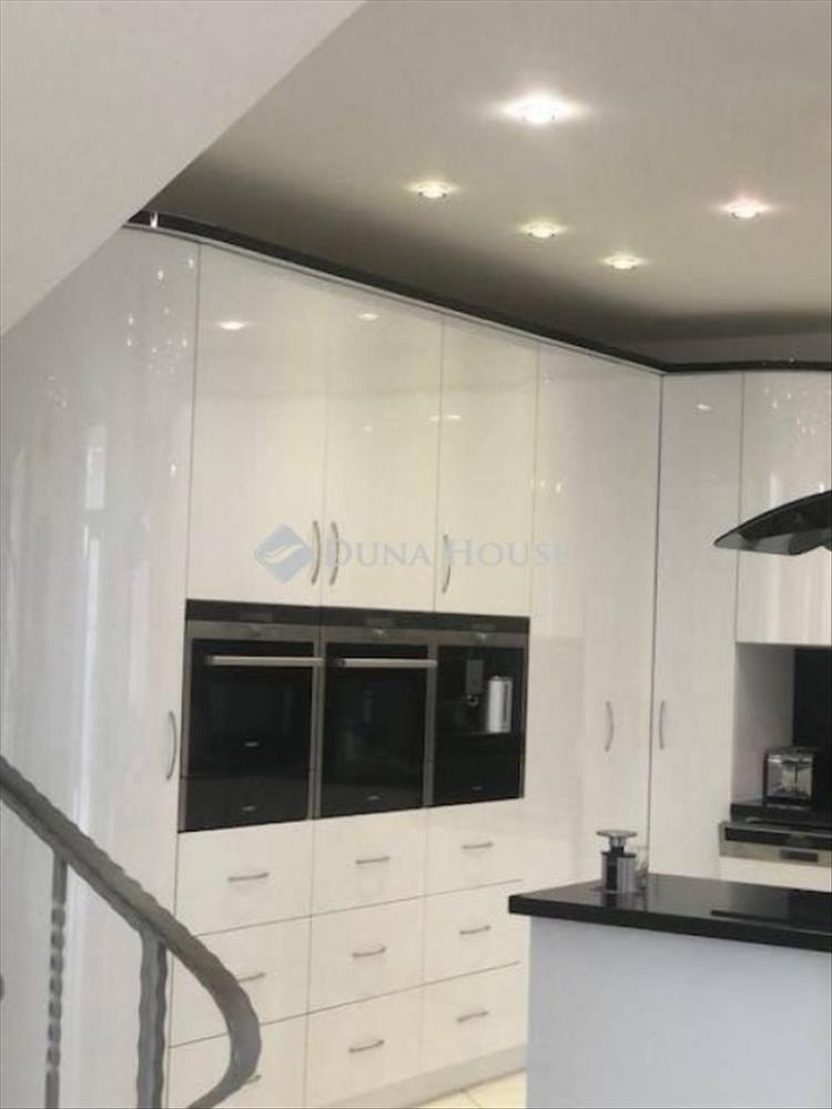 Az egyedi tervezésű minden igényt kielégítő konyha, a legmagasabb minőségben és színvonalon berendezett, siemens beépített konyhagépekkel. Mosogatógép, nagyméretű indukciós tűzhely, sütő, mikró, étel melegen tartó berendezés, páraelszívó és dupla ajtós hűtő is beépítésre került.