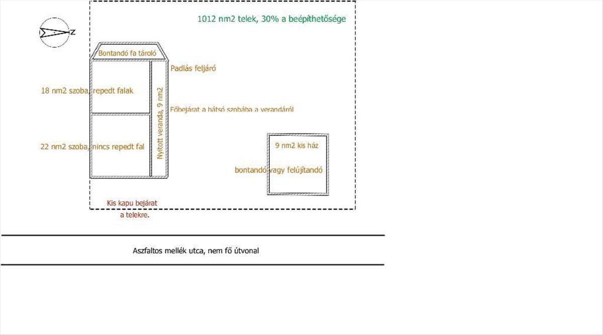 Az ingatlan bontandó vagy erősen felújítandó állapotban van, így a kreatív tulajdonos saját ízlésére alakíthatja.