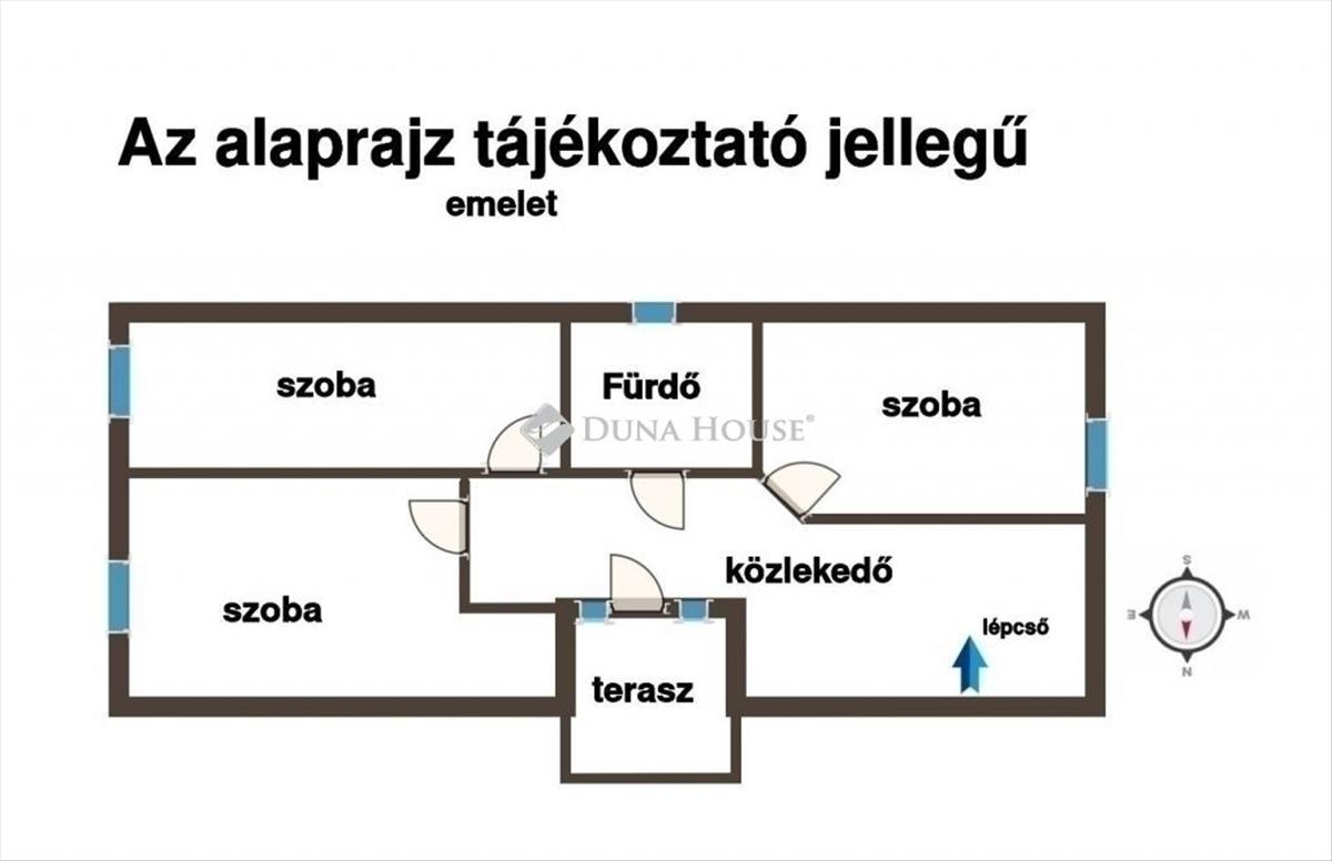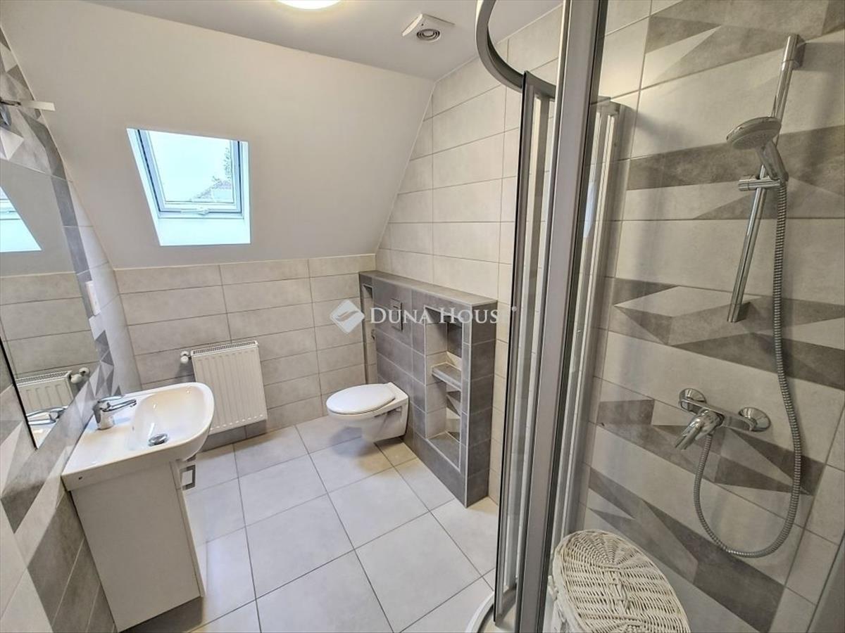 A földszinten tágas nappali, részben szeparált, teljesen gépesített konyha (indukciós főzőlap, mosogatógép, külön hűtő, mikró), valamint fürdőszoba épített zuhanyzóval és külön wc található. Az emeleten a tetőtérben egy társalgótérből nyílik három külön bejáratú hálószoba és egy második fürdőszoba WC-vel és nagyméretű, 90x90-es sarokzuhanyzóval.
