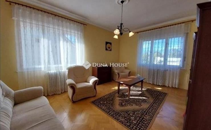 Az aszfaltozott utcáról nyíló kapun keresztül juthatunk be a rendezett, parkosított udvarra. a 192 m2-es épület belső kétszintes, praktikusan elrendezett lakótérből áll.