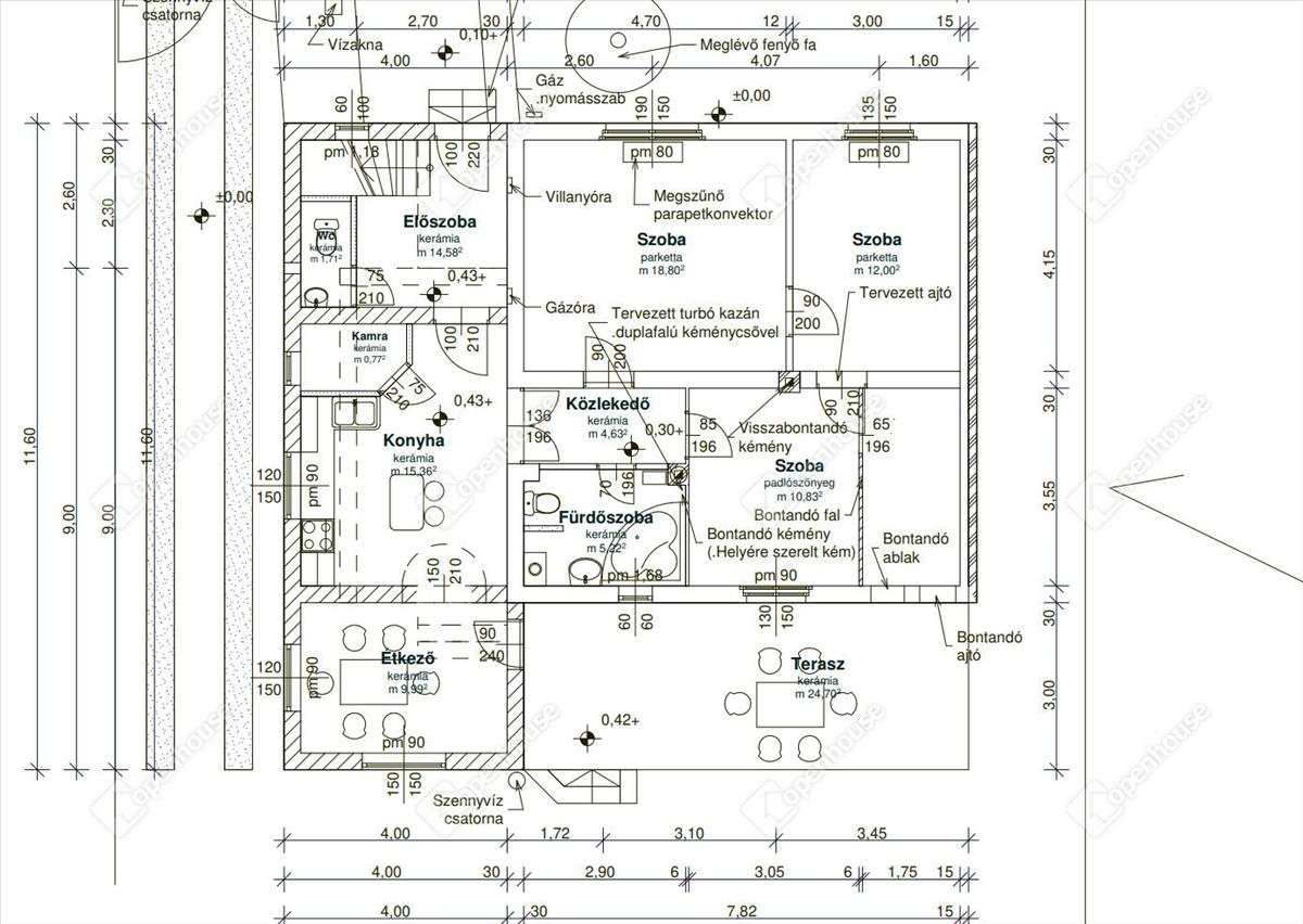 Földszint: 94 m² lakótér + 24 m² fedett terasz