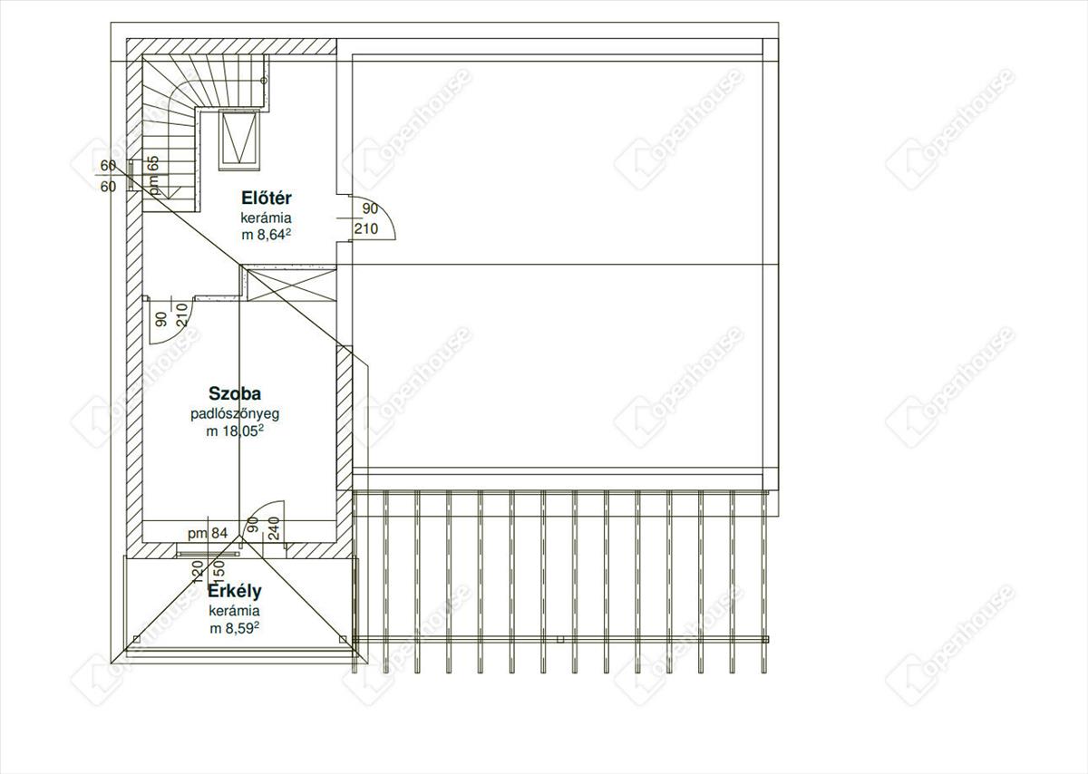 Emelet: 27 m² lakótér + 8 m² fedett terasz
