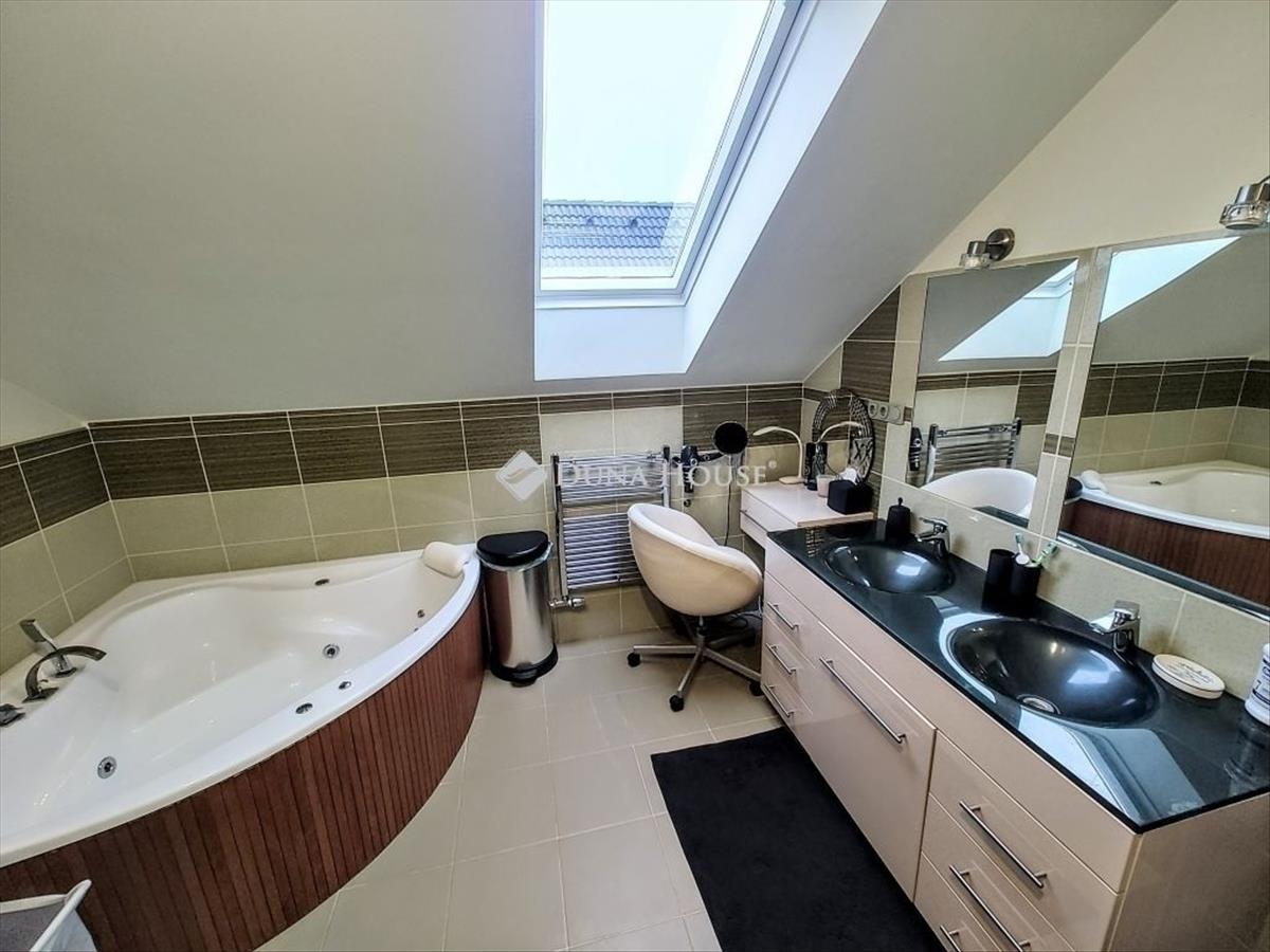 A korszerű, kiváló hőszigetelésű nyílászárók elektromos redőnnyel és szúnyoghálóval felszereltek. a kellemes hőérzetet padlófűtés, illetve több helyiségben elhelyezett inverteres klímák biztosítják, így az otthon minden évszakban kellemes klímát nyújt.