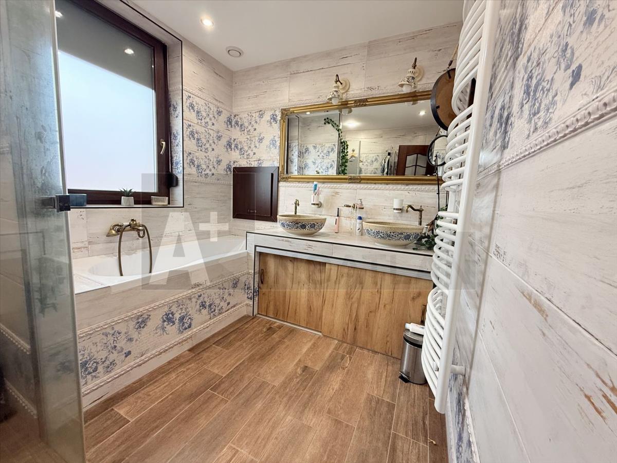 A két szintes, 198 m2-es ház + közvetlen a nappalihoz kapcsolódó, 20 m2 téliesíthető terasz és a kert végében megépített, szintén teljesen felszerelt, téliesíthető, grill terasz, fürdőszobával, wc-vel: