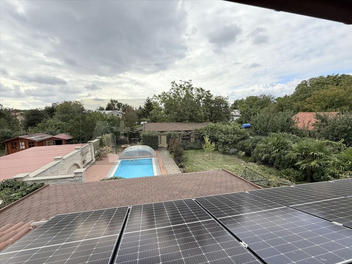 -napelem 11kw, hőszivattyú, padló fűtés, mennyezet hűtés, termosztát helyiségenként, központi szellőztető, központi porszívó, riasztó rendszer, 6 kamerás,