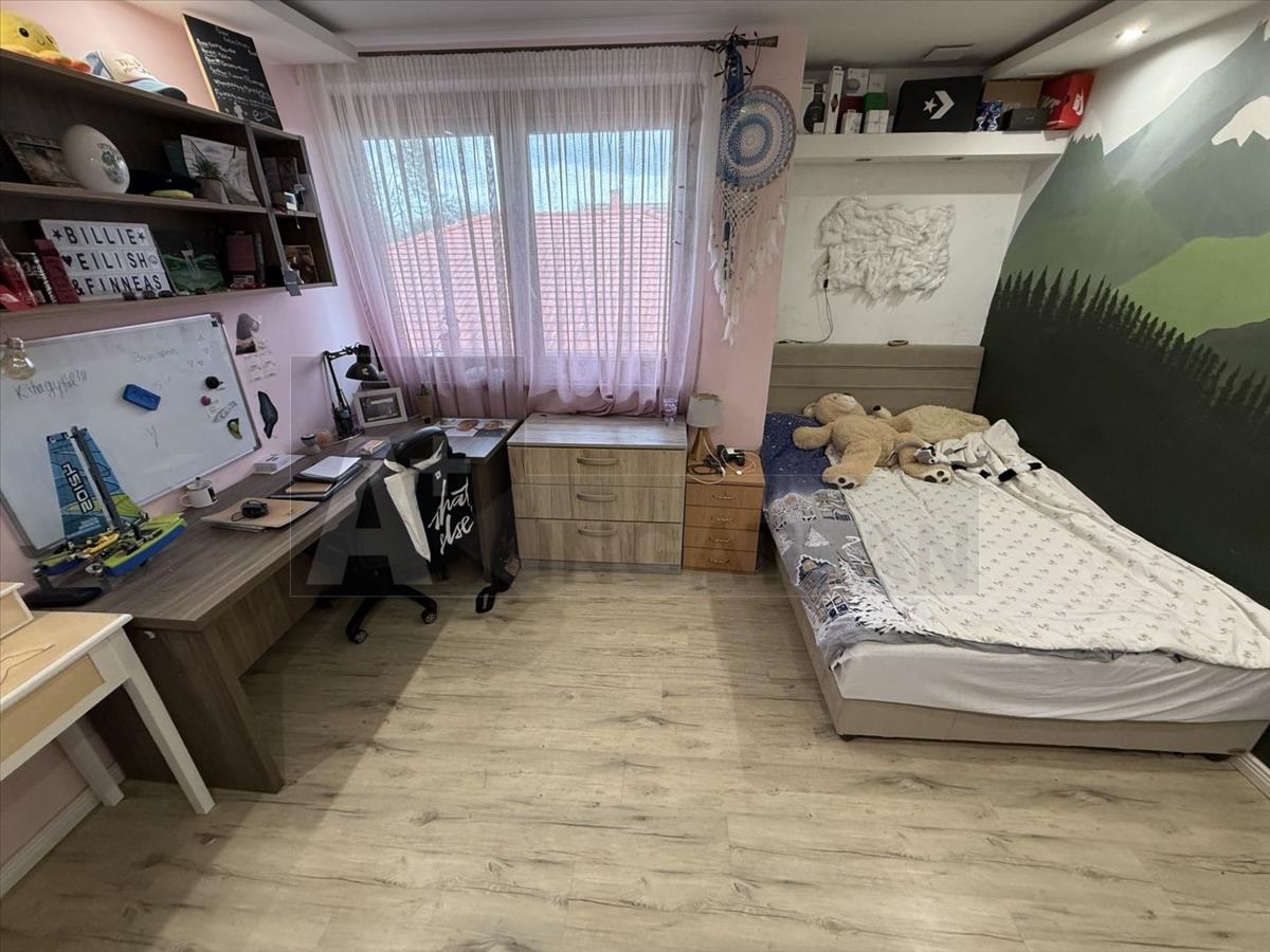 és itt van kialakítva a szülői hálószoba, gardróbbal és saját fürdőszobával