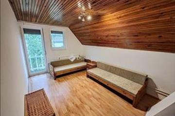 A földszinten tágas nappali, részben szeparált, teljesen gépesített konyha (indukciós főzőlap, mosogatógép, külön hűtő, mikró), valamint fürdőszoba épített zuhanyzóval és külön wc található. Az emeleten a tetőtérben egy társalgótérből nyílik három külön bejáratú hálószoba és egy második fürdőszoba WC-vel és nagyméretű, 90x90-es sarokzuhanyzóval.