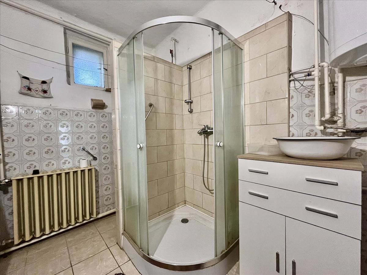 A fürdőszoba körülbelül 10 éve lett felújítva, zuhanyzós kialakítással.
