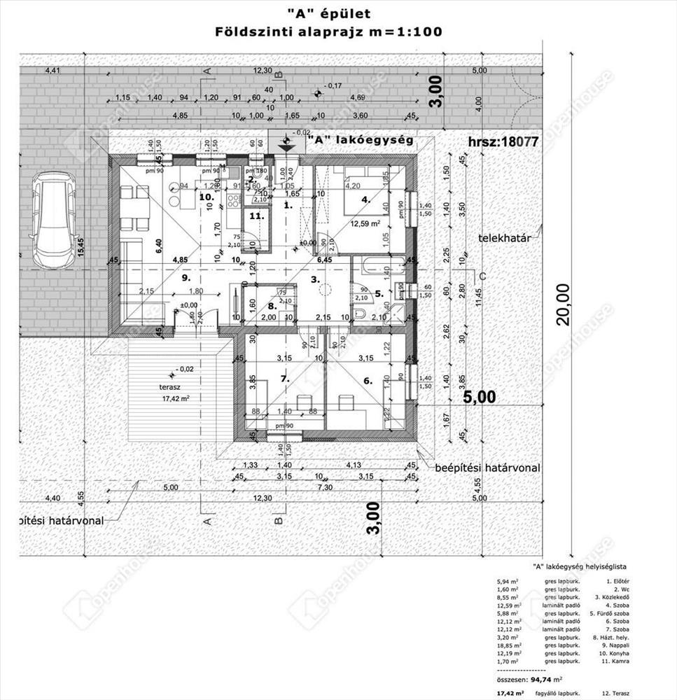 95 m²-es családi ház + 18 m² épített terasz kerámia burkolattal,