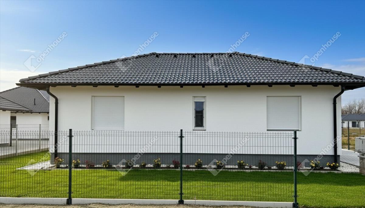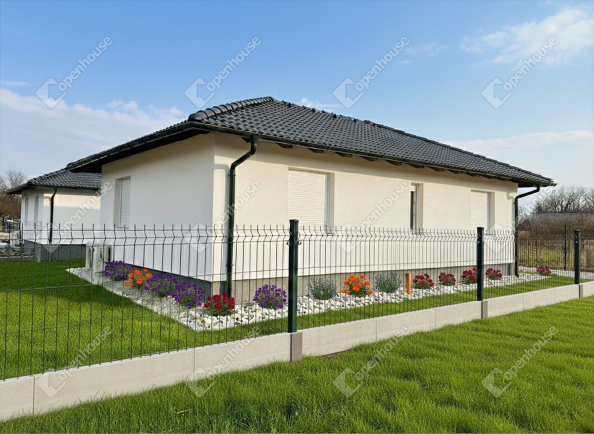 Az ingatlanról: Az ingatlan minőségi alapanyagok felhasználásával és a modern technológia alkalmazásával készül, a lehető legmagasabb színvonalon, modern megjelenéssel. a nettó alapterület 95 m², ami magában foglal egy hatalmas amerikai konyhás nappalit, 3 hálószobát, egy fürdőszobát WC-vel, egy külön WC-t, egy kamrát és egy háztartási helyiséget. Továbbá az ingatlanhoz tartozik 2 db térkövezett kocsibeálló, egy nagyméretű épített terasz és egy saját használatú, 400 m²-es kertrész is. Az ingatlan 2 hónapon belül birtokba vehető, amint a burkolatok és az ajtók kiválasztásra kerültek.