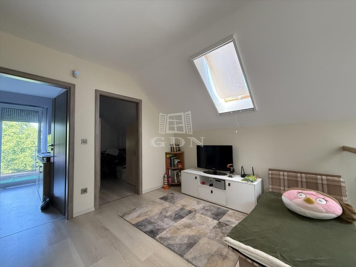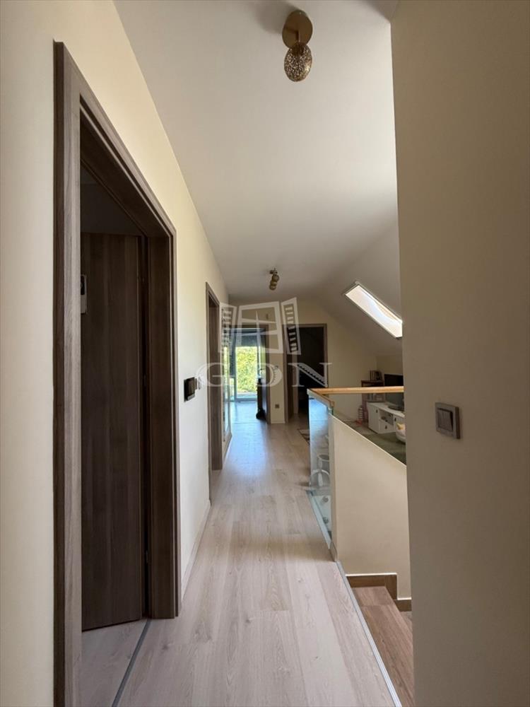 ‣ Tetőtér: kis nappali, három hálószoba (a szülői hálóhoz 9 m²-es terasz kapcsolódik), gardrób, egy kisebb dolgozószoba, fürdőszoba és WC.