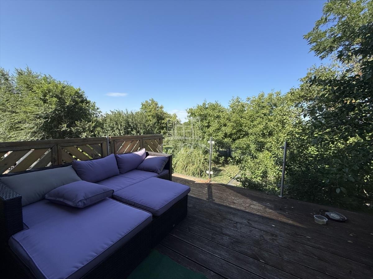 A ház udvara hangulatos kerttel rendelkezik, ahol számos örökzöld, különféle bokrok, gyümölcsfák (alma, meggy, birs, dió, mandula) és virágok találhatók. a 2462 m²-es telek méreténél fogva alkalmas akár gazdálkodásra, díszkert kialakítására, medence építésére vagy más kényelmi és funkcionális kertmegoldásokra is.