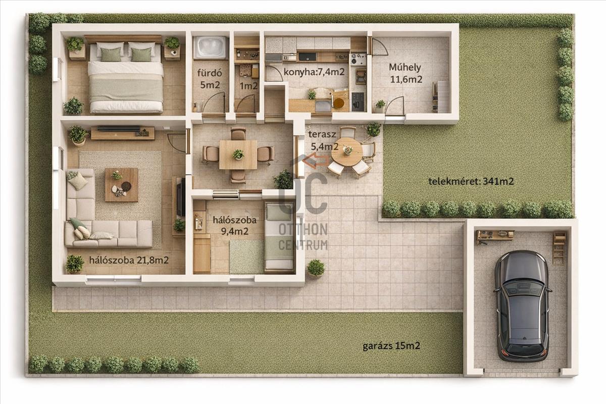 - Telekterület:341 m2