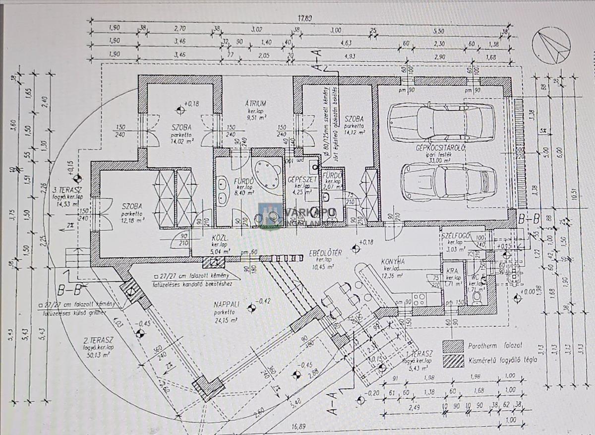 Műszaki leirás: Porotherm 38-as tégla + hungarocell szigeteléssel, a tetőtéren 12-es szarufa gerendázattal készült a ház. a műanyag nyílászárók faerezetűek, a zsalúzia motoros vezérlésű, a beltéri ajtók egyedi gyártásúak, a garázskapu motoros működtetésű, távirányítású.