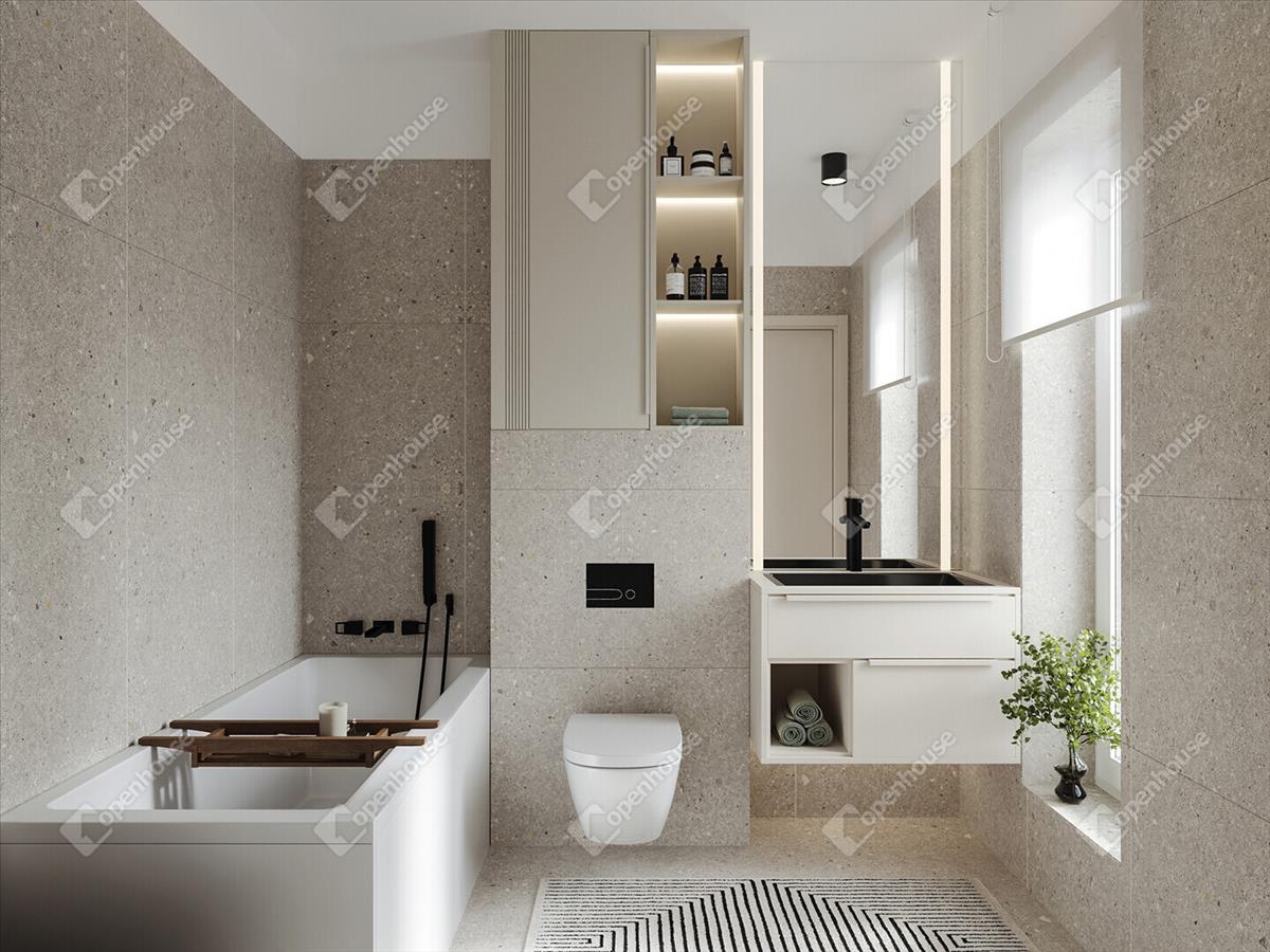 - nappali + 3 szoba, 2 fürdő, gardrób háztartási helyiség, vendég wc