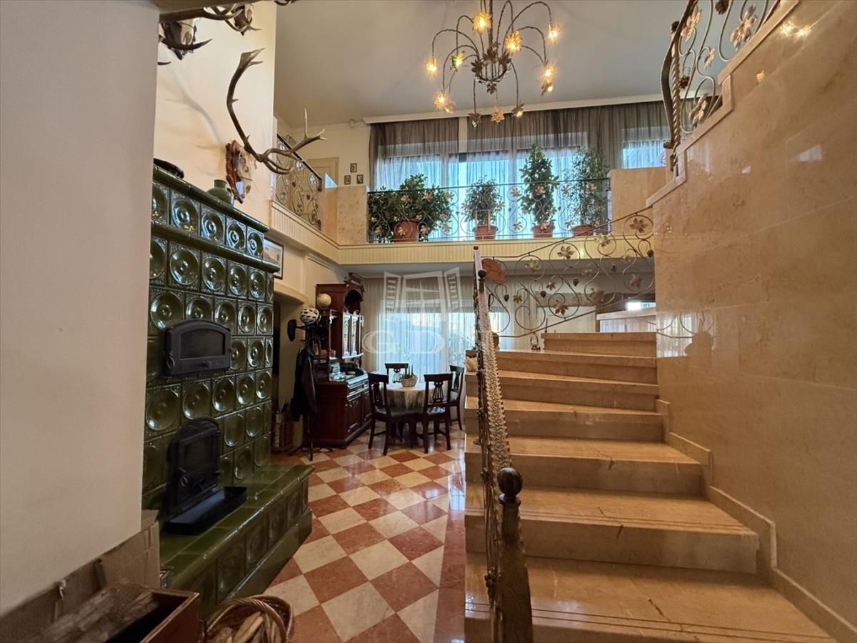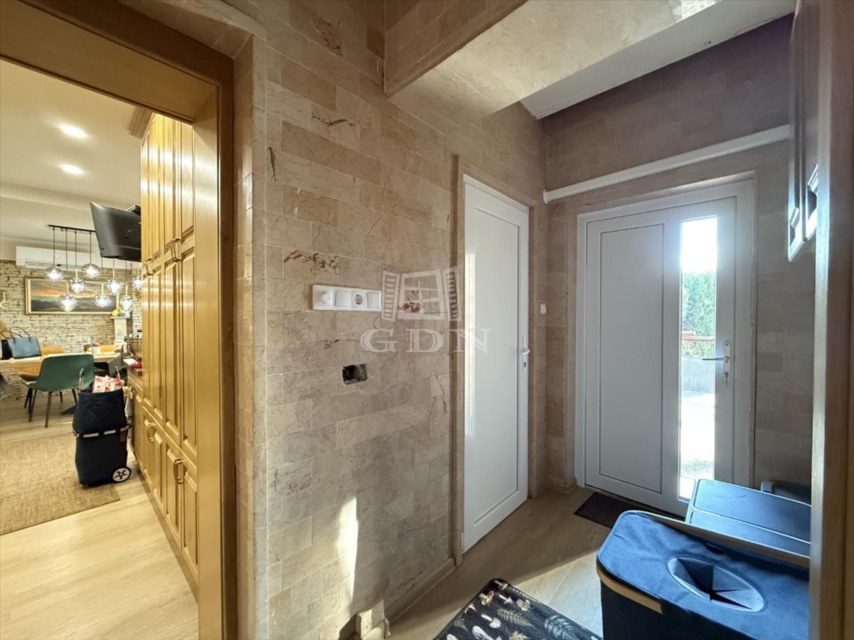 Az 1523 m2-es területen elhelyezkedő ingatlan 1995-ben épült, Porotherm téglából, 8-12cm kőburkolattal, illetve hőszigeteléssel. Fűtése gázkazán, padló és radiátoros hőleadással. Nagy teljesítményű klímarendszerrel. Másodlagos fűtésnek a nappali közepén egy impozáns méretű cserépkályha található. Vastag falaknak köszönhetően a rezsiköltsége alacsony. a burkolatok magas minőségű kő és márványburkolat, mely az egész házat egyedivé teszi.