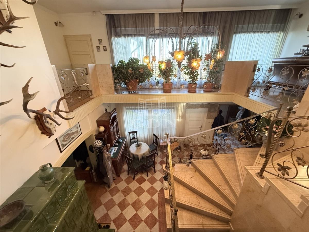 Három szint, 400m2: Pince, földszint és tetőtér-beépítésű „u” alakú lakóépület, Összesen 7 teljes értékű szobával, mindegyikhez fürdőszoba és gardrób tartozik, központi tágas konyha étkezővel, szalon, nappalival, télikert, tárgyaló, boltíves borospincével, teraszokkal.
