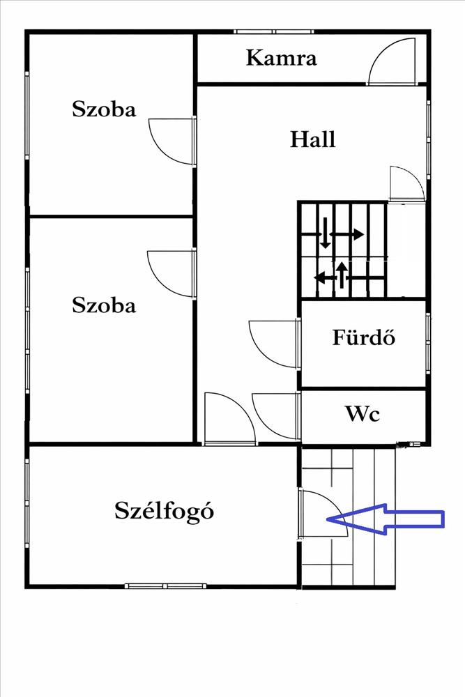 - Szélfogó, előszoba, 3 szoba, fürdő, wc elosztású