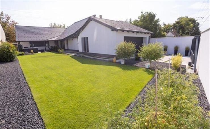 A garázsban 3 fázis kiépítésre került, a kertben gyepszőnyeg lett telepítve, kiépített locsolórendszerrel. a garázs beállón, az utcán kialakított parkolási részen, összesen 6-7 autónak van hely.