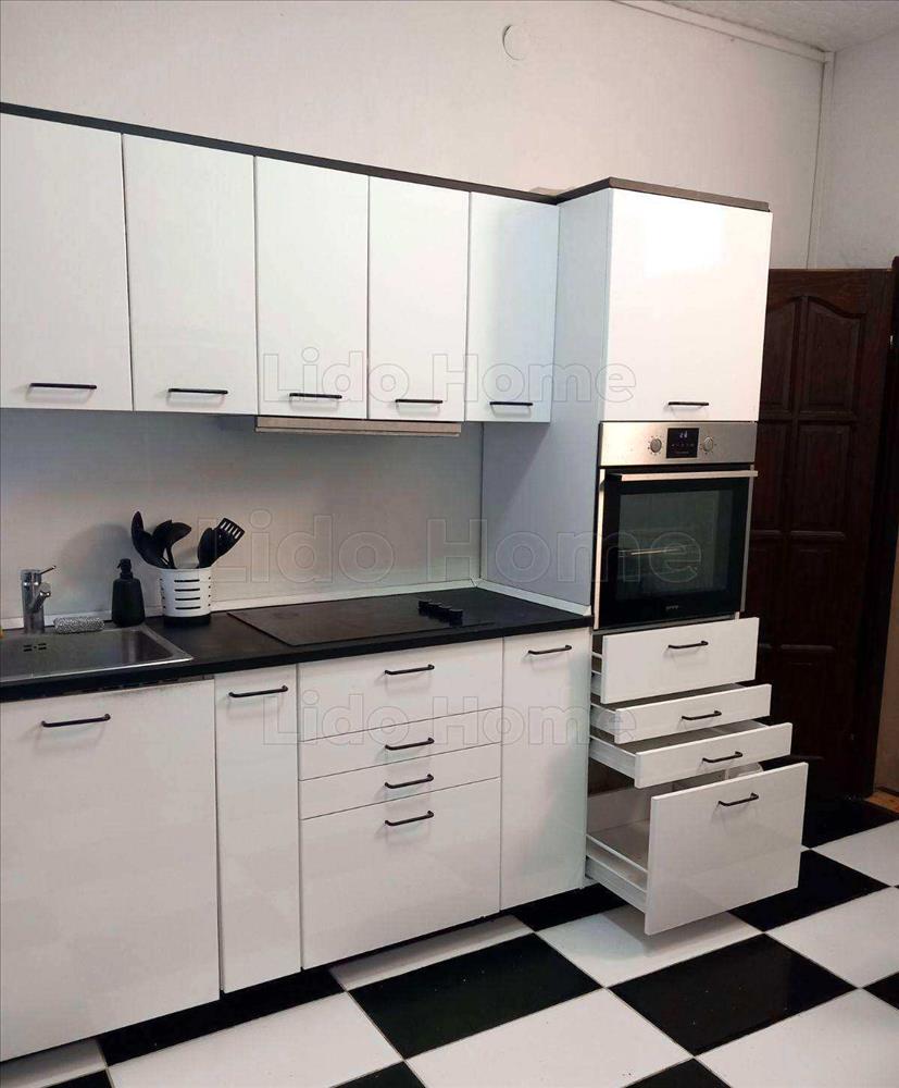 A beépített konyha a vételár részét képezi, így a kombinált hűtő, sütő, főzőlap és mosogatógép is az új tulajdonosé lesz.