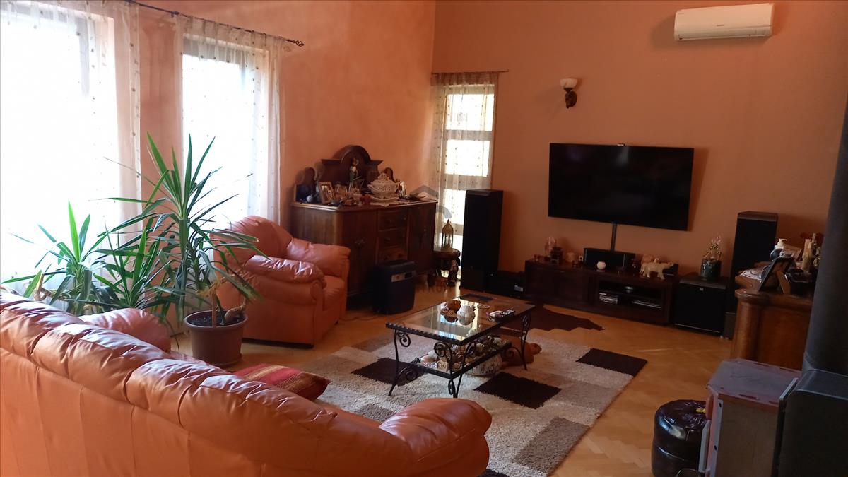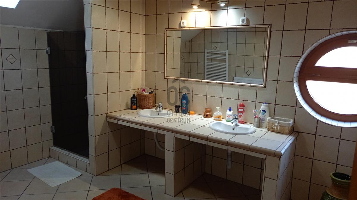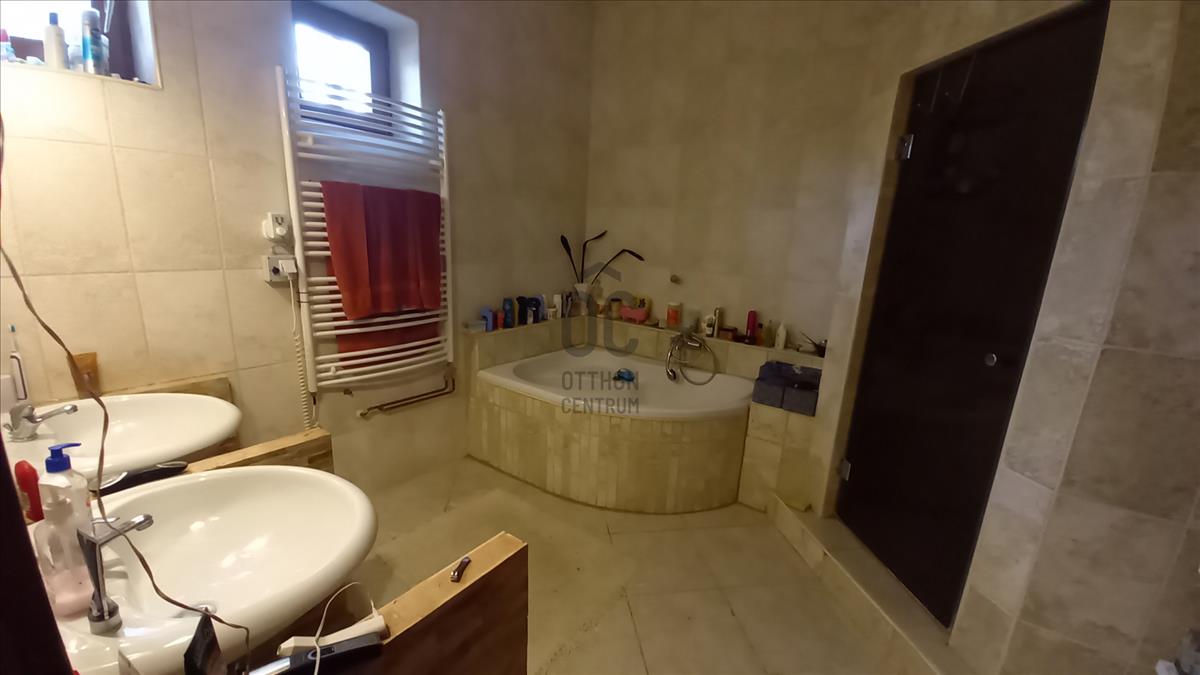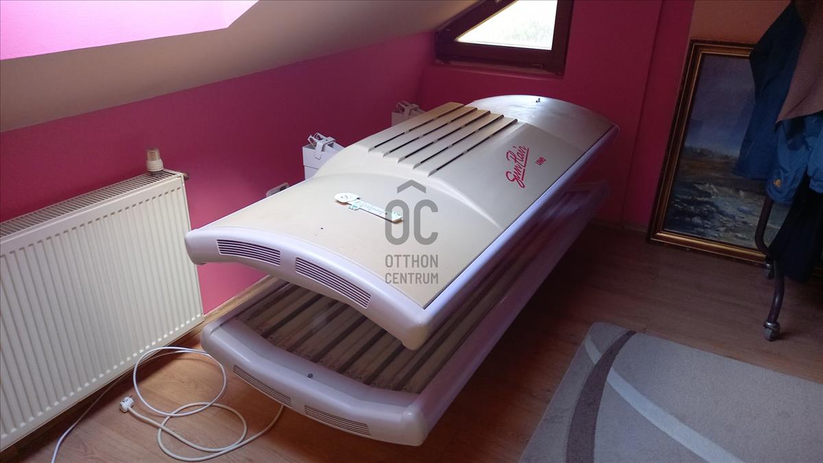 Az ingatlan 445 m2-es, nappalis + 6 szobás, 3 fürdőszobás, 3 gardróbos, dupla garázsos, konditeremmel, 12 KW-os naperőművel, ásott kúttal, nagy terasszal ellátott, amely 1233 m2-es telekre épült. a ház 38-as Porothermből épült 2008-ban. Fűtését három módon lehet megoldani: meleg vizet is biztosító kondenzációs kazánnal, villany kazánnal, melyek hőleadását padlón, falon ill. Radiátorokon keresztül végzik, valamint 7 db hűtő-fűtő klímával.