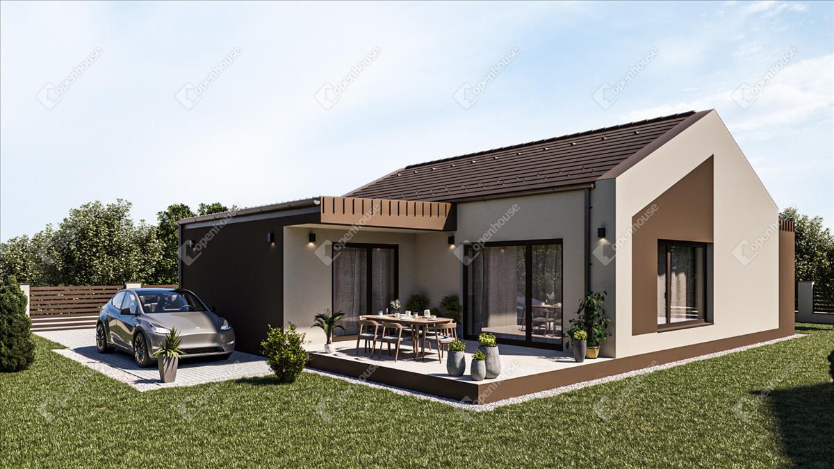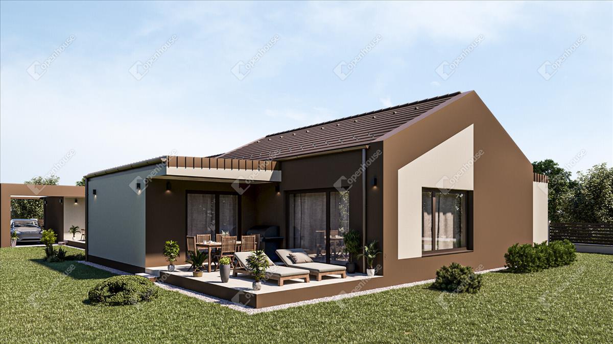 AZ ingatlanról: Az ingatlan minőségi alapanyagok felhasználásával és a modern technológia alkalmazásával készül, a lehető legmagasabb színvonalon, modern megjelenéssel. a nettó alapterület 105, 32 m2, ami magába foglal egy hatalmas amerikai konyhás nappalit, 3 hálószobát, 2 fürdőszobát WC-vel, , egy gardróbot, egy kamrát és egy háztartási helyiséget. Továbbá az ingatlanhoz tartozik egy 21, 23 m2-es terasz, és egy saját használatú 537 m2-es telek is.