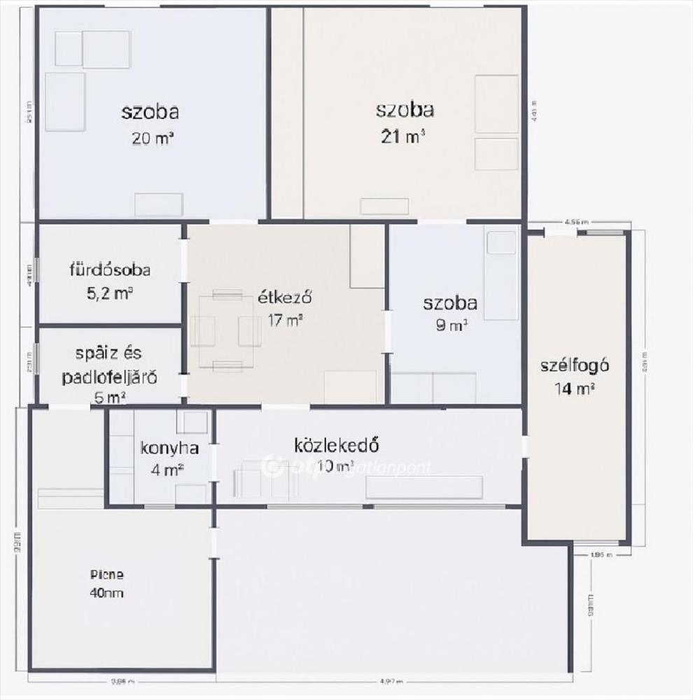 A ház állapota összességében gondozott és megkímélt, további bővítési potenciállal.