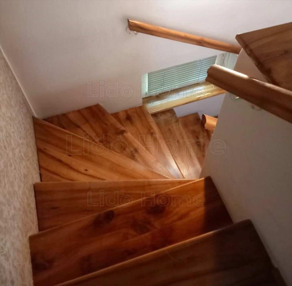 A diófából készült lépcső az emeletre vezet, ahol akár 6 szoba is könnyedén kialakítható gipszkartonozással, szerkezeti átalakítás nélkül. Az egyik szoba erkéllyel is rendelkezik.