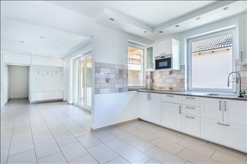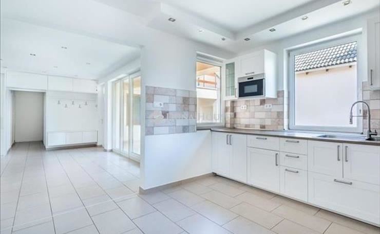 A földszinti konyha gépesített, beépített bútorok találhatóak.