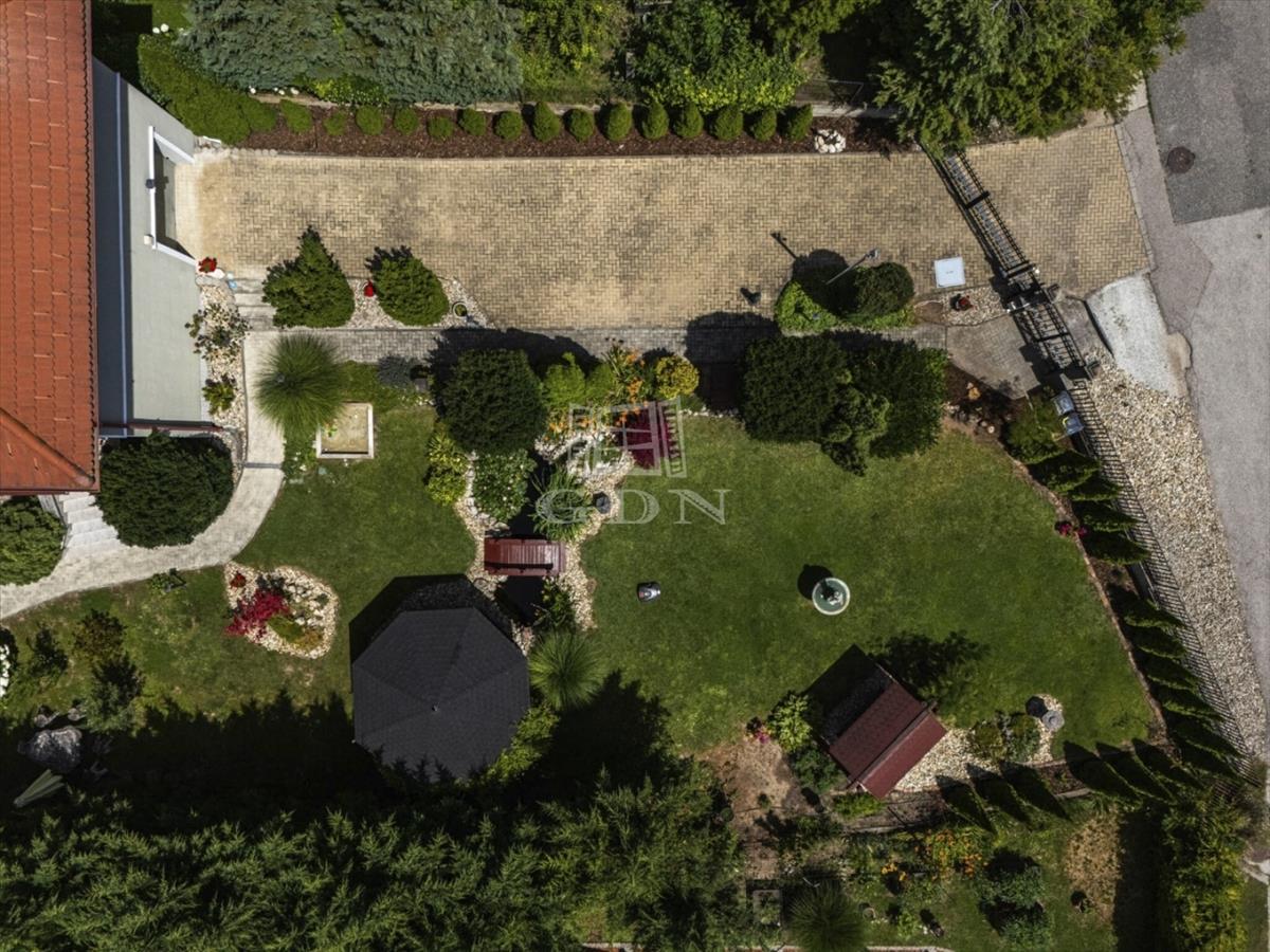 A 1421 m²-es, két utcafrontos telek közepén álló ház mindkét szintje önálló, saját utcai bejárattal, mérőórákkal és kb. 710 M²-es telekrésszel rendelkezik.