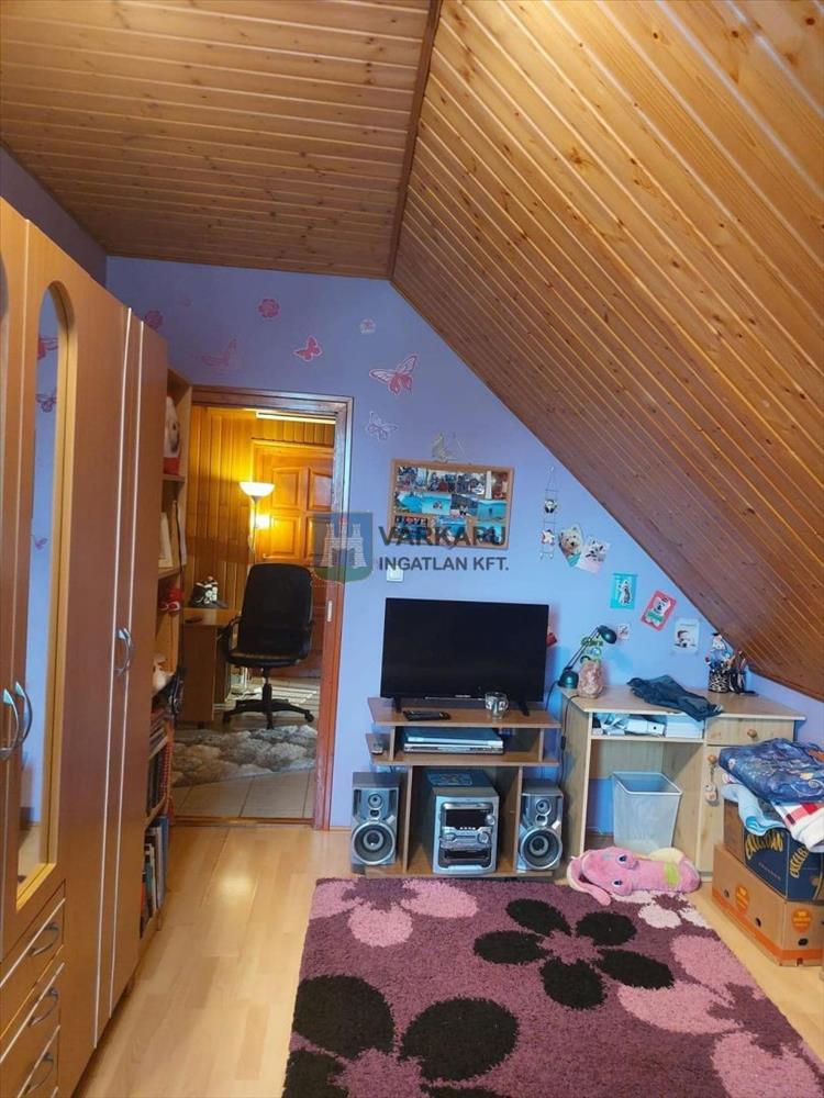 A ház 96 m2 - es alsó szintje nappaliból, hálószobából, télikertből, gardróbból, konyhából étkezőből, kamrából, háztartási helyiségből, fürdőszobából, mellékhelyiségből és előszobából áll. Ide tartozik egy kertre néző, 43 m2 – es terasz is. a 100 m2 – es tetőtéri rész 2 szobából, fürdőszobából, mellékhelyiségből, előszobából és igény szerint 50 m2 beépíthető, szerkezetkész részből tevődik össze. a ház mellett vízzel, villannyal ellátott, fűthető dupla garázs található. a családi házat 1270 m2 ápolt kert veszi körül, amely kivilágítható, áramvételi lehetőséggel és kerti csapokkal ellátott. Az itt lévő nagyméretű melléképület felújítás után több funkciót is betölthet.