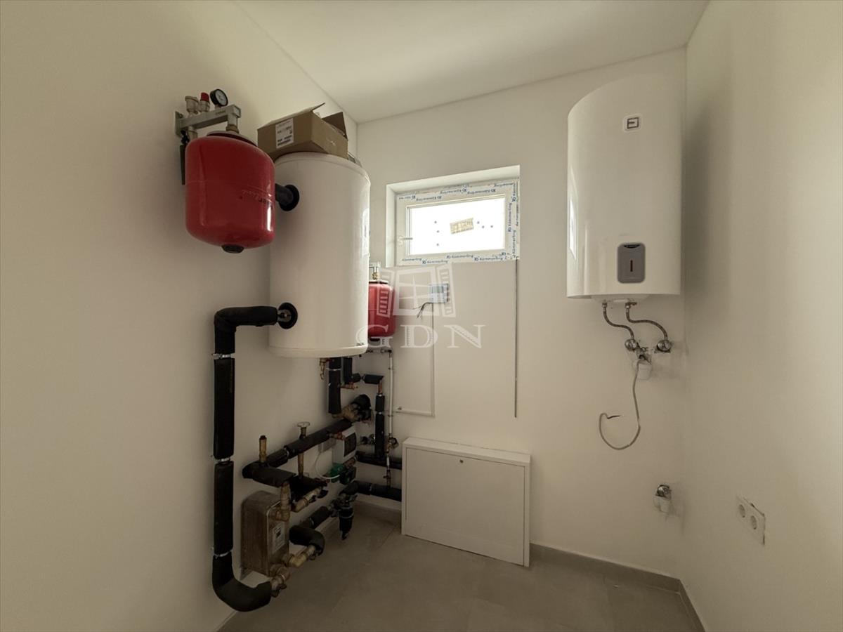 A nyílászárók műanyagból készültek, 3 rétegű hőszigetelt üvegezéssel, rejtett redőny tokkal. a burkolatok magas minőségű járólap, illetve laminált padló. Fűtése-melegvíz: hőszivattyú megoldással, padlófűtéssel. 1Db klíma a vételárban.