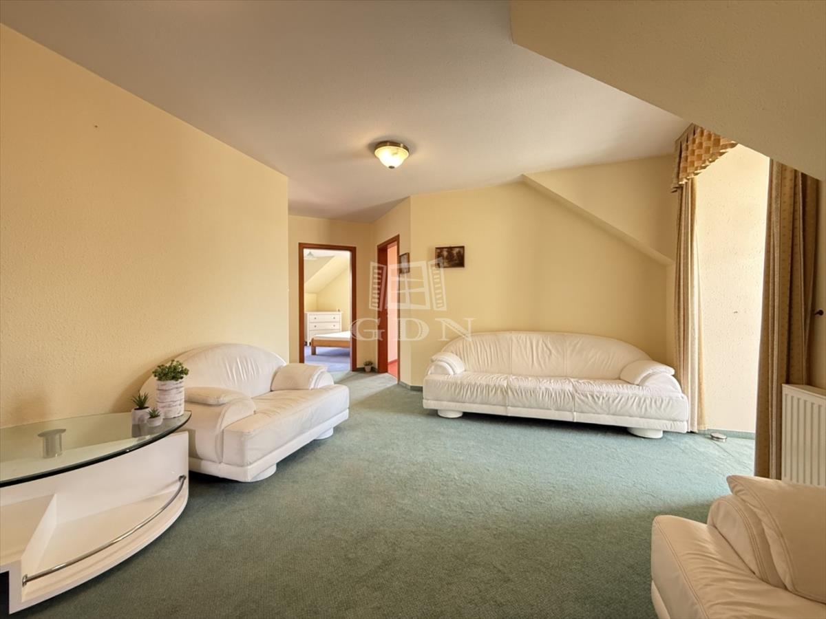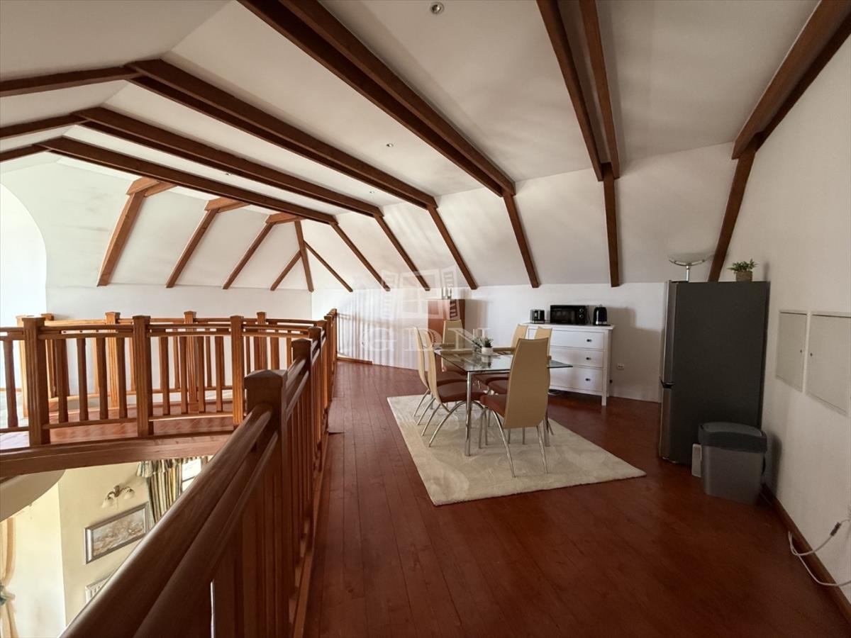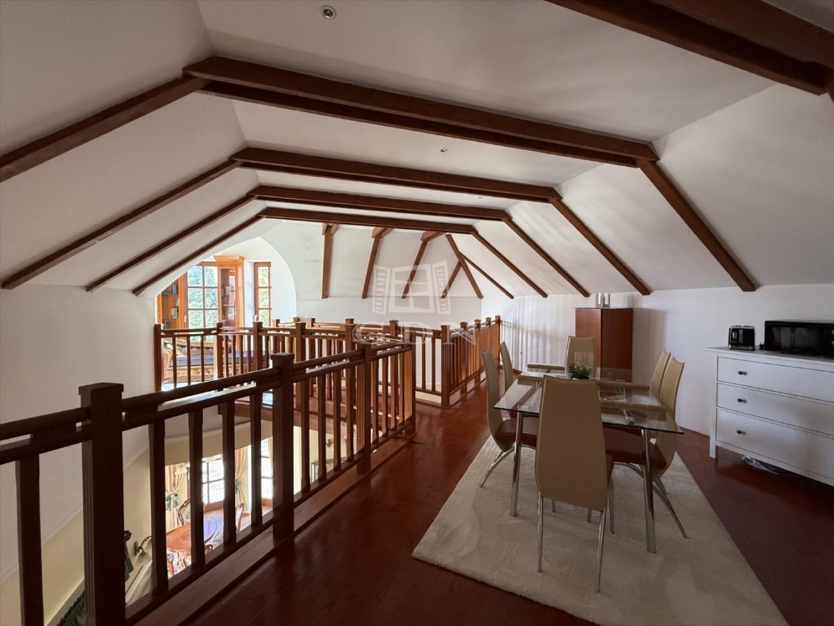 Tetőtér (138m2): a lépcsőházon keresztül közelíthető meg. Az épület utcai szárnyában helyezkednek el a hálószobák, három szoba a nappali, és a fürdőszoba. a nappali felett galéria készült dolgozósarokkal, amelyet híd köt össze a torony tetőtéri szintjével, ahol olvasóhelyiség lett kialakítva. a földszinti déli terasz felett erkély készült, amire a toronyból lehet kijutni.