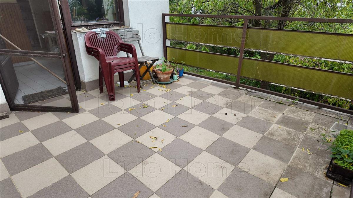 Az első szinten lévő 112 m2-es lakás tágas, világos. Hatalmas üvegfelületei és praktikus elrendezése otthonos légkört teremt. Bár nem árt új tulajdonosának saját arcára faragni a lakást, de ez a szint azonnal költözhető, lakható. 3 Szoba, ebből az egyik egy légtérben a 32 m2-es nappalival, konyha, spájz, tágas, 10 személynek kényelmes étkező, wc, fürdő és előtér képezi ezt a lakást. Ehhez tartozik még 2 terasz (12 és 14 m2), melyekről lépcsők vezetnek a kertbe. Egyik alatt zárható, másik alatt pedig nyitott tároló lett kialakítva. a szinten 3 klímaberendezés és egy kandalló biztosítja a meleget.