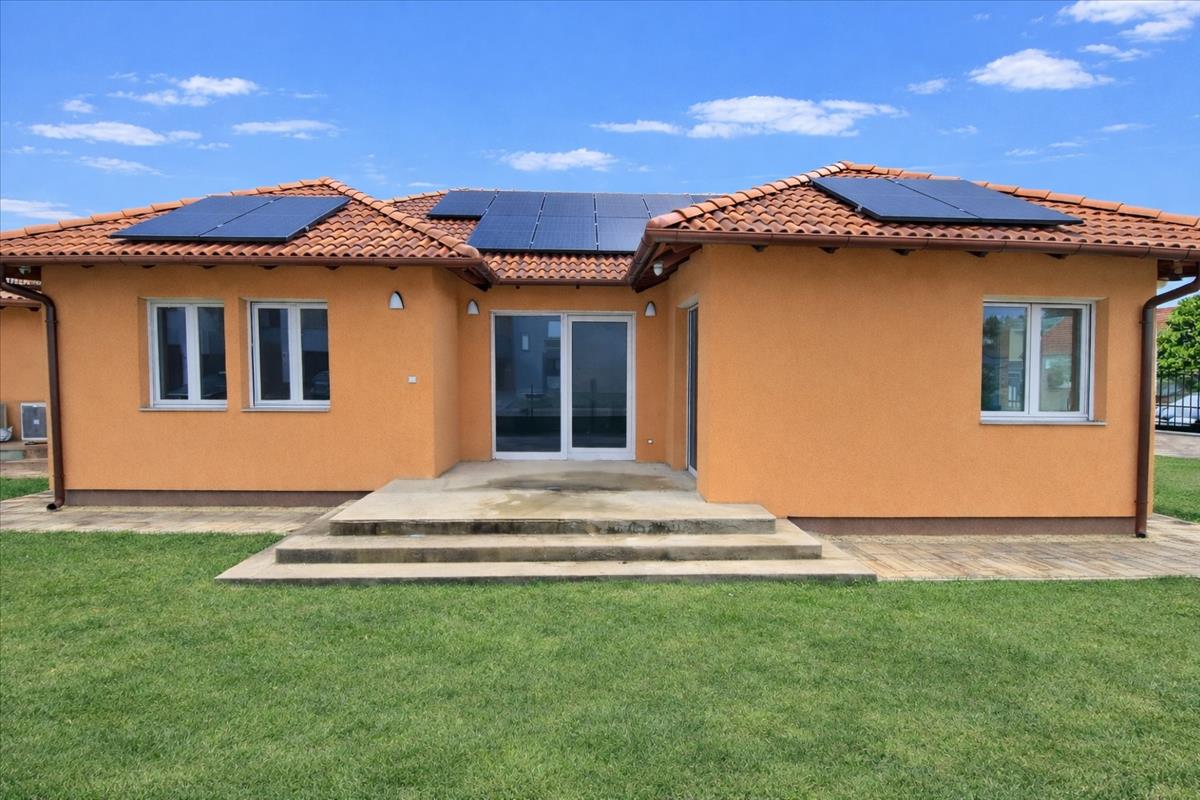 A ház elrendezése: nappali-étkező, konyha, 4 szoba, 2 fürdőszoba + különálló wc, kamra, gépészeti helység, garázs.