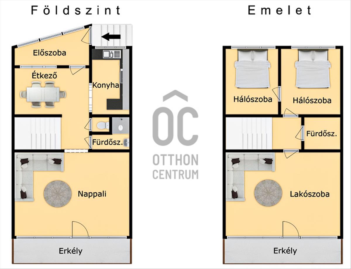 *A felső szinten 3 hálószoba és egy fürdőszoba lett kialakítva. Mindkét lakószinten erkély is megtalálható.