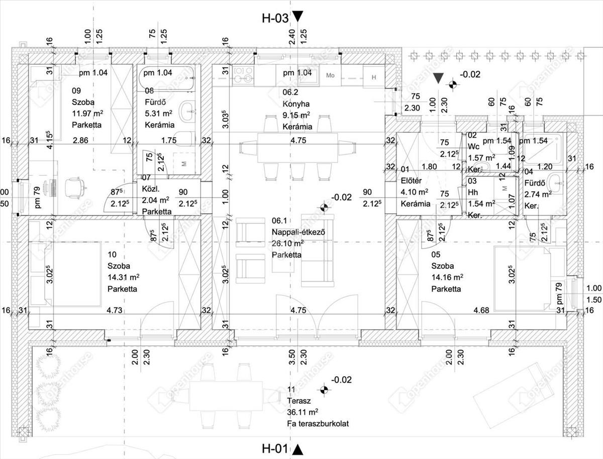 94m2-es családi ház + 36m2 fedett terasz + 9m2 fedett szélfogó,