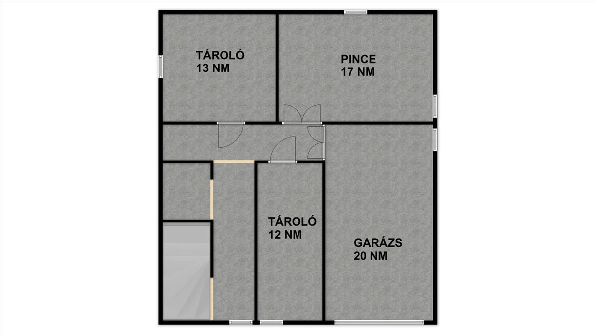 Az alagsorban garázs, kazánház és több tárolóhelyiség található, amely jelentős pakolási lehetőséget biztosít.