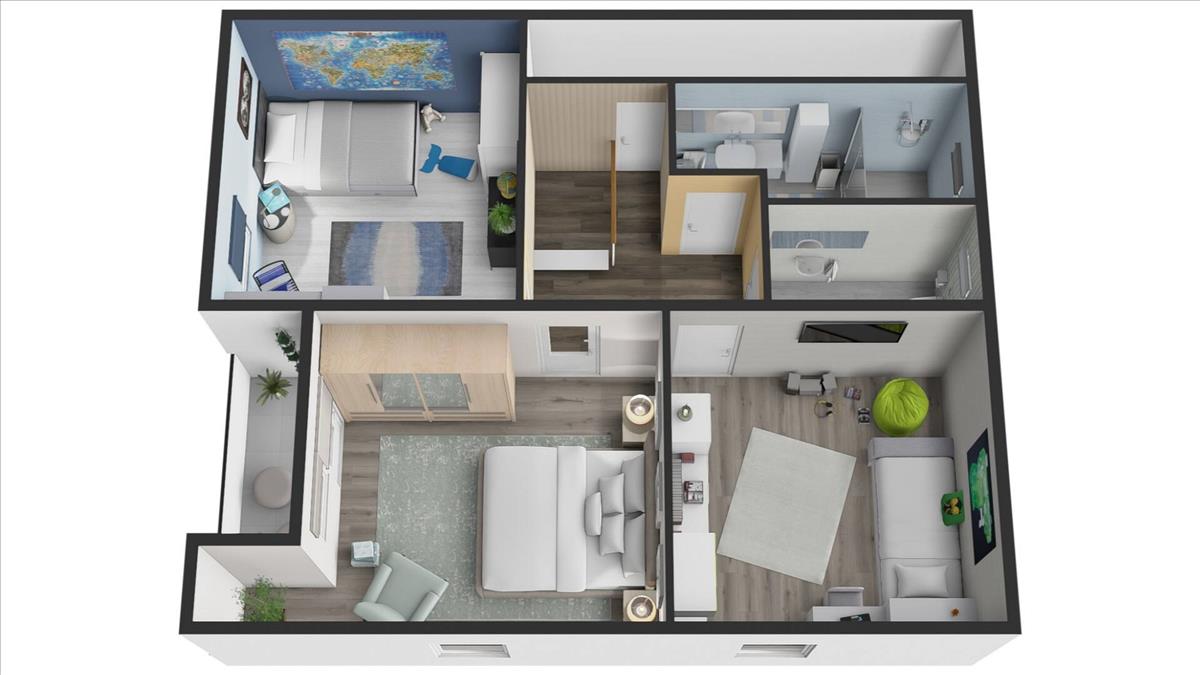 A helyiségek arányosak, jól bútorozhatók, természetes fénnyel ellátottak. a két szint elrendezése ideális nagyobb család számára is.