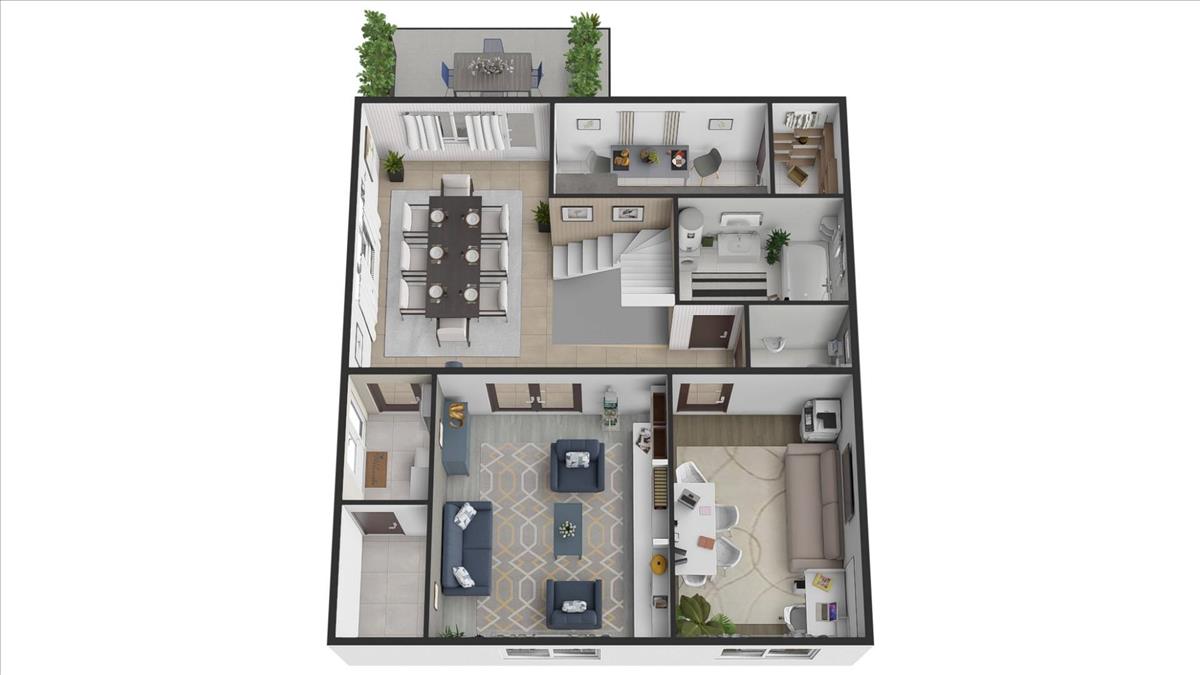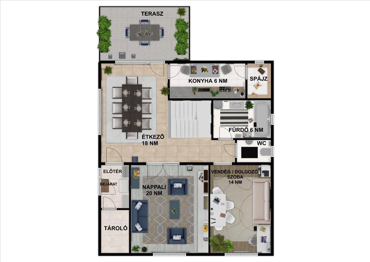 Az étkezőből közvetlenül elérhető a ~8 nm -es terasz, amely kellemes kapcsolatot teremt a kültérrel.