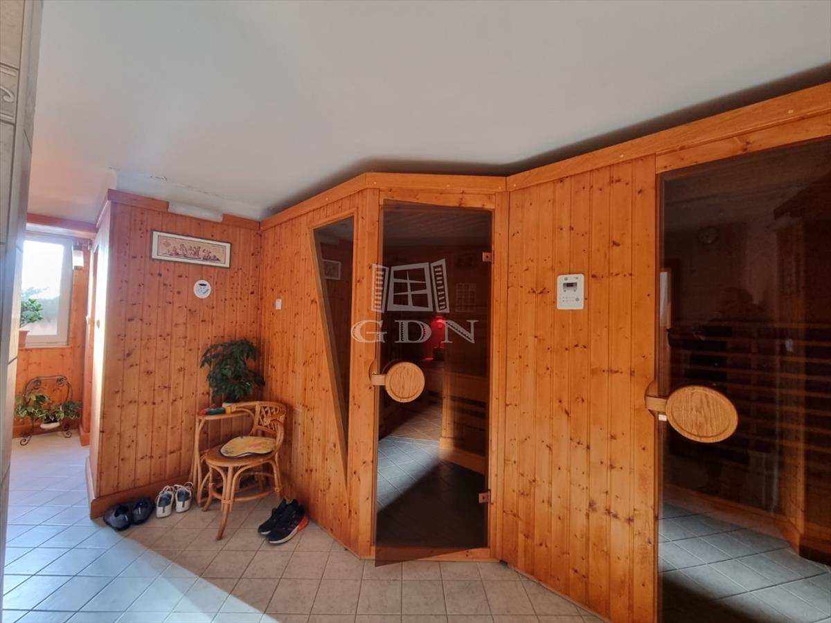 A szuterén szint : 107m2, az egyik részen helyezkedik el a garázs, kazán és a gépészet. a másik felében a wellness részleg: előtér +szauna pihenő, zuhanyzó, Gőzfürdő, Infra szauna, Finn szauna, tornaszoba. Valamint egy mini bár, illetve a jakuzzi.