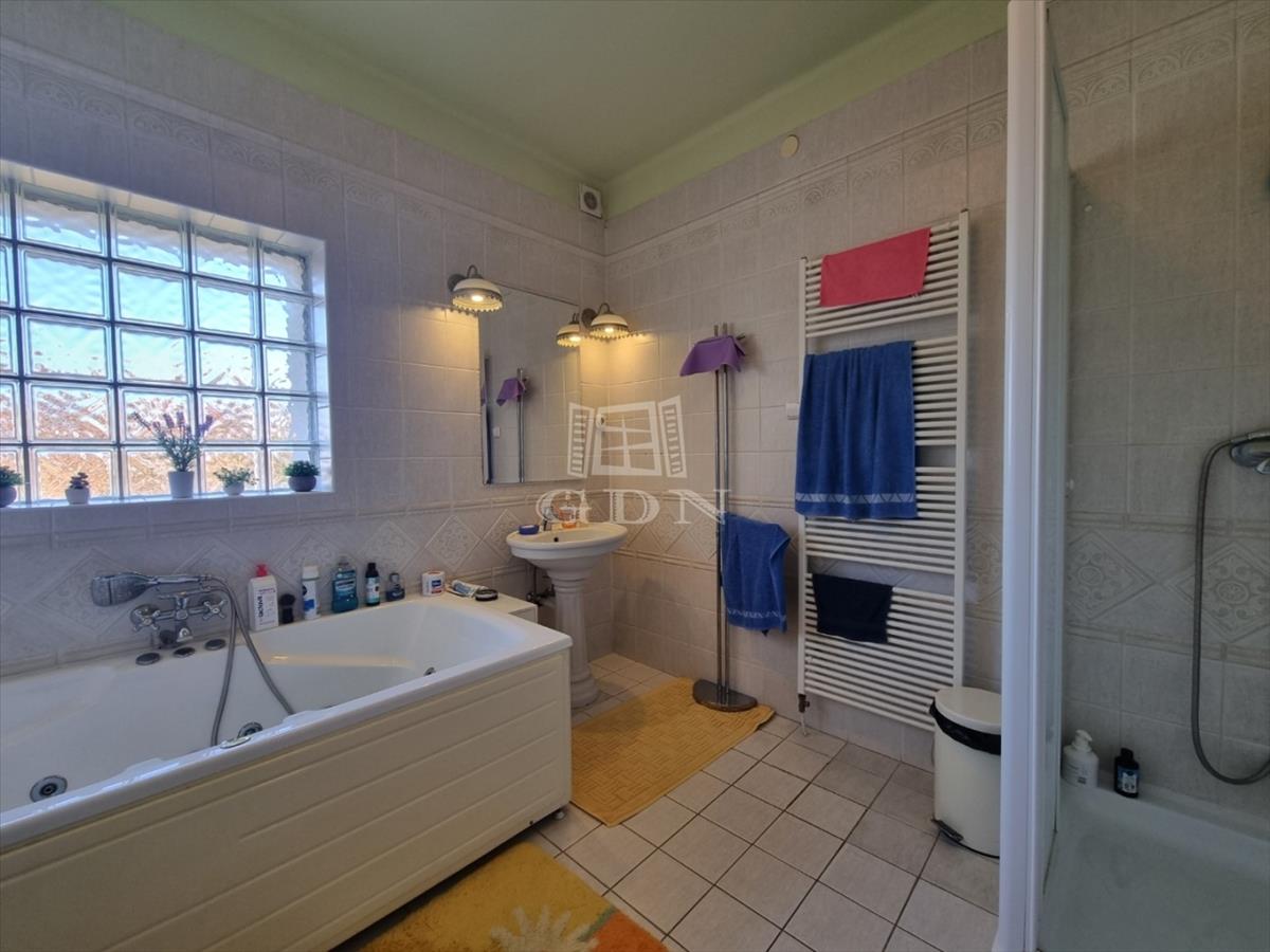 A szuterén részen van még egy külön lakrész 75m2 : saját bejárat, előszoba, egy 26m2-es nappali +1 hálószoba, gardrób, tároló, fürdőszoba és wc, a ház többi szintje is megközelíthető belső lépcsőházon keresztül.
