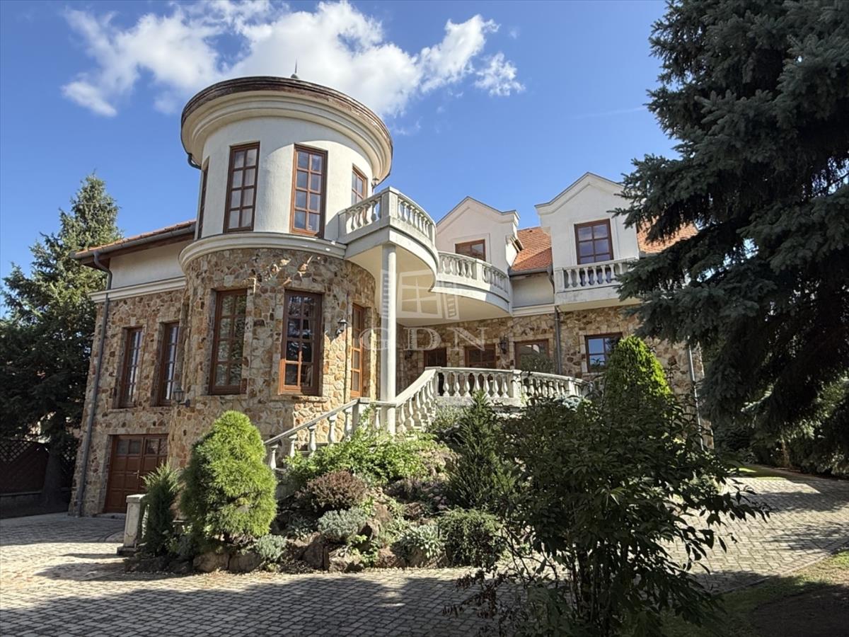 Az eklektikus stílusú épületnek 4 bejárata van nagy terasszal. a felső teraszokról pompás kilátással a kertre.