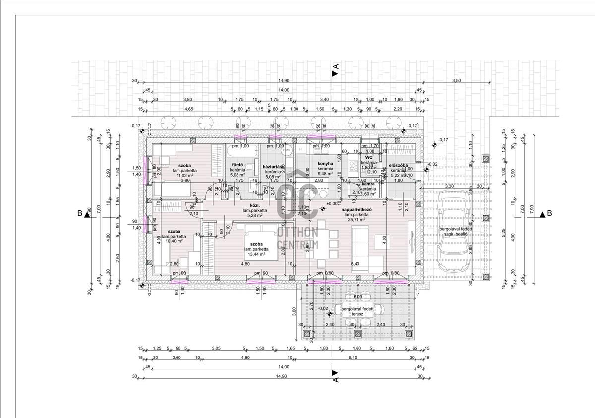 * 94, 1 nm hasznos alapterület + 18 nm -es pergolával fedett terasz