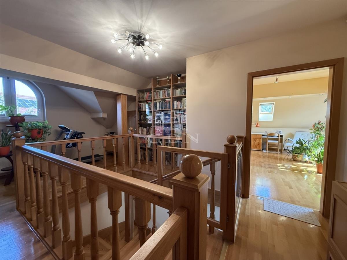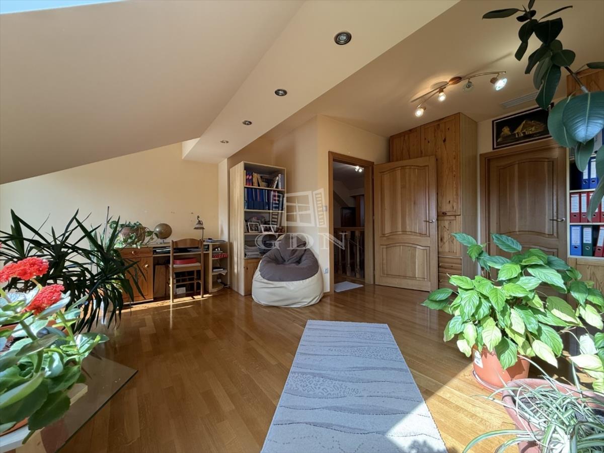 Tetőtér : a központi lépcsőn keresztül közelíthető meg. Itt helyezkednek el a további hálószobák, 2 hálószoba saját fürdőszobával, és gardróbbal rendelkezik. . a galéria másik feléről közelíthető meg a jelenleg tároló/ vendégszobaként funkcionáló + még 2 szoba.